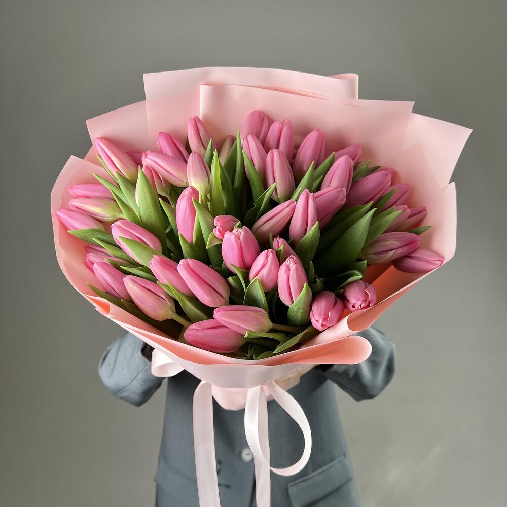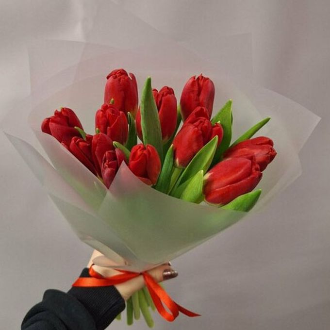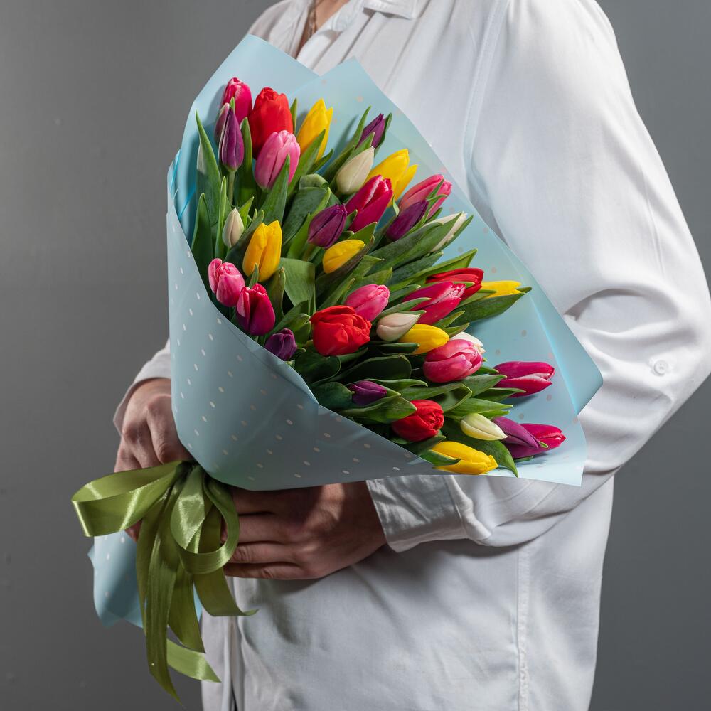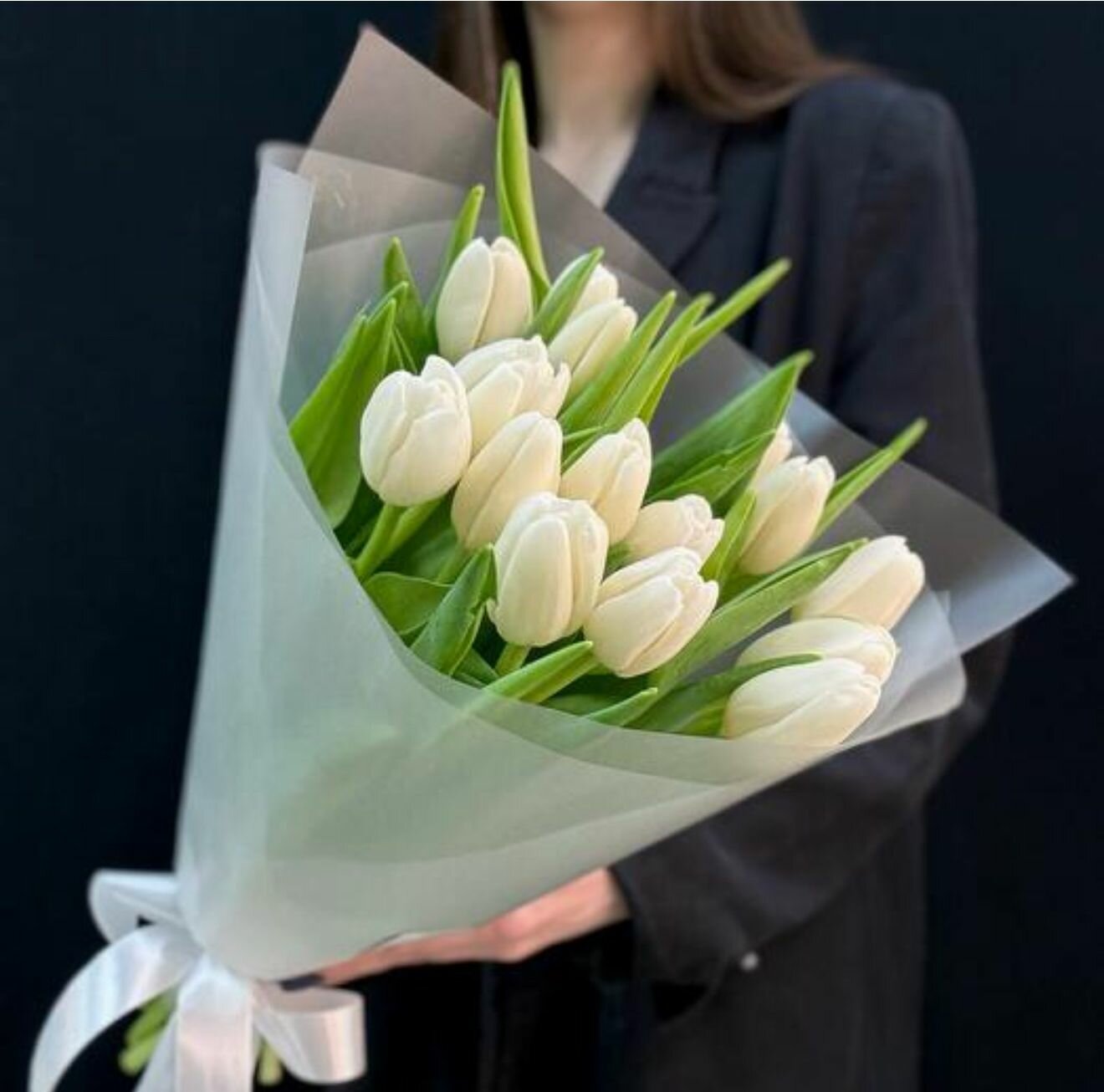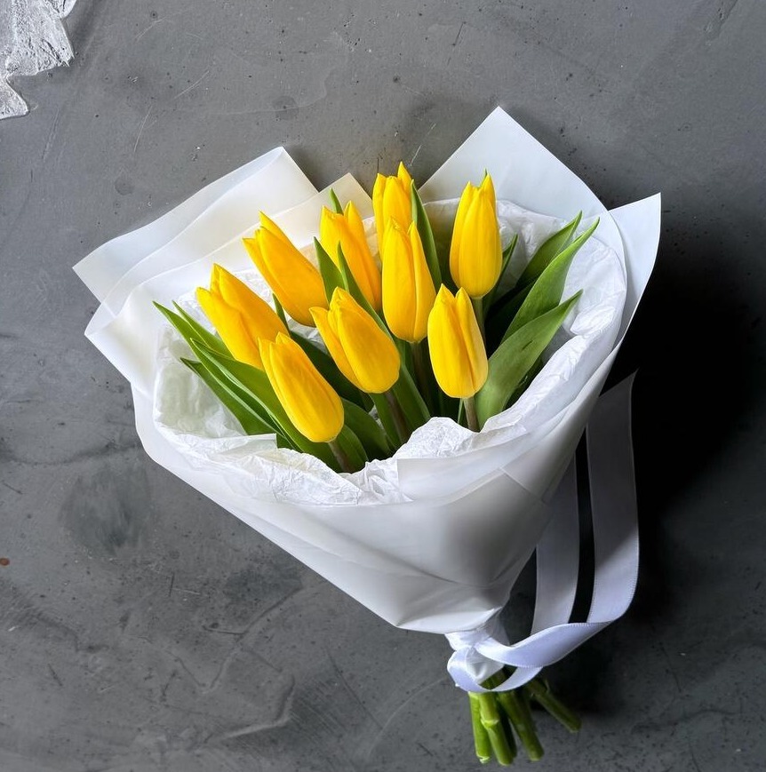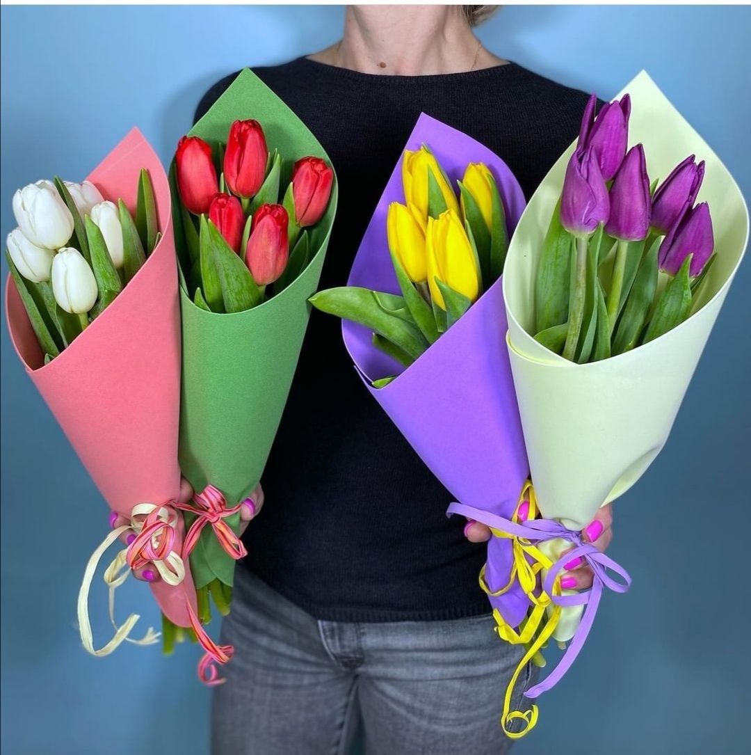 Букет из  тюльпанов, бережно завернутых в стильную упаковку, станет идеальным подарком для тех, кто ценит простоту и элегантность.