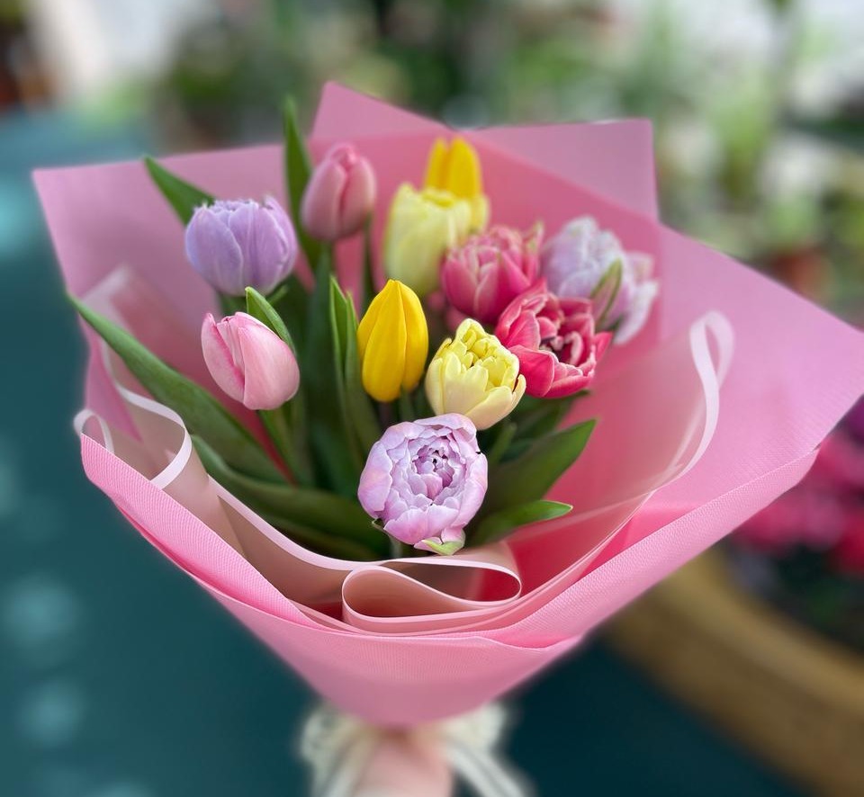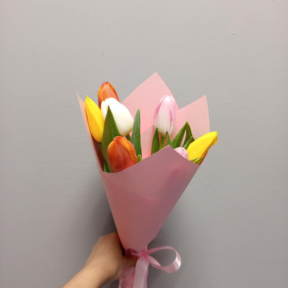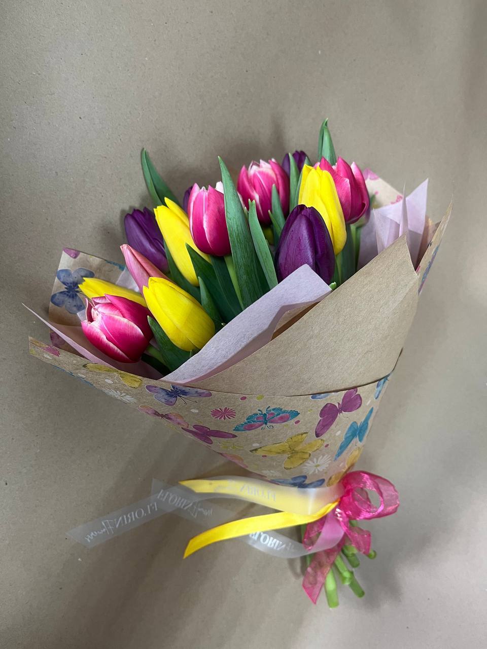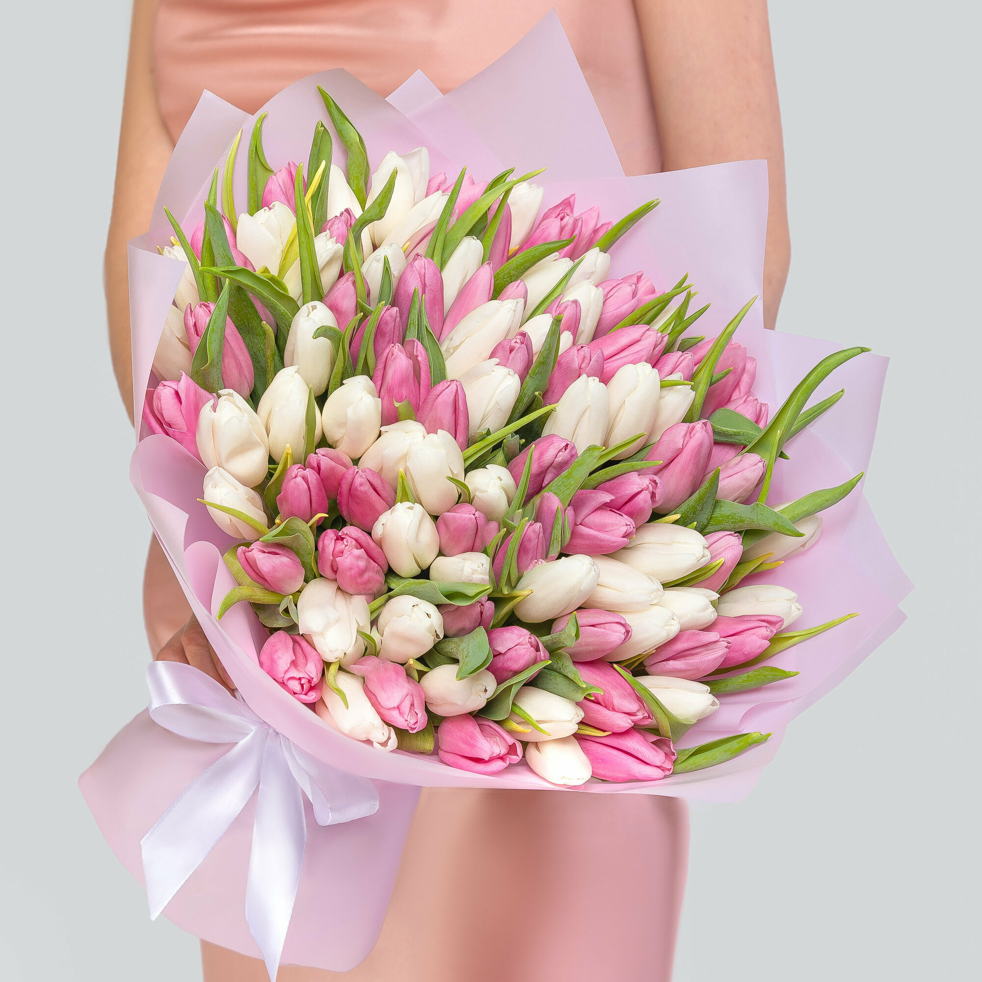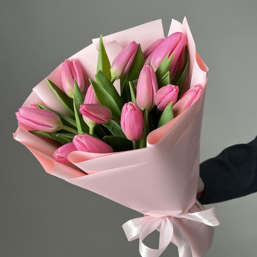 Букет из  тюльпанов, бережно завернутых в стильную упаковку, станет идеальным подарком для тех, кто ценит простоту и элегантность.