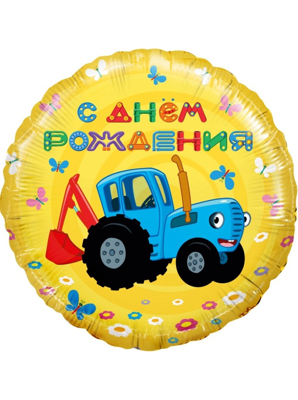 Фольга шар круг Синий трактор, С днем рождения! желтый 18"/46 см